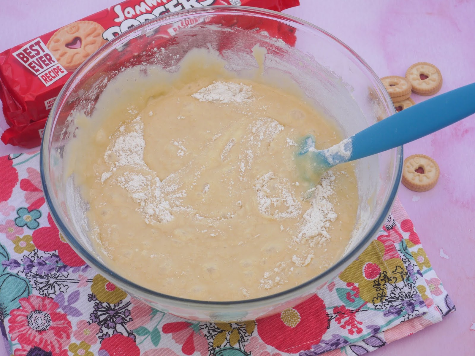 Place 12 Jammie Dodger biscuits over the batter. Add pocket-sized ones too, if you lot want.